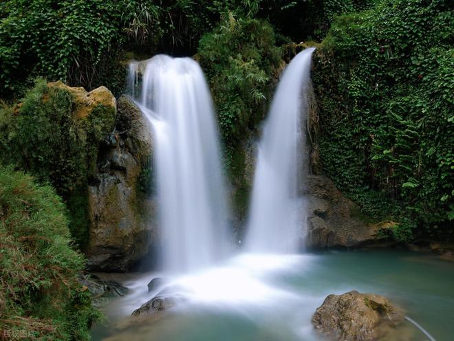 从栈道下来,顺着石阶走10分钟就是龙凤瀑布,两条瀑布从崖顶冲下来,夏天水花能溅到10米外,站在观景台能感受到“透心凉”,比空调还舒服;